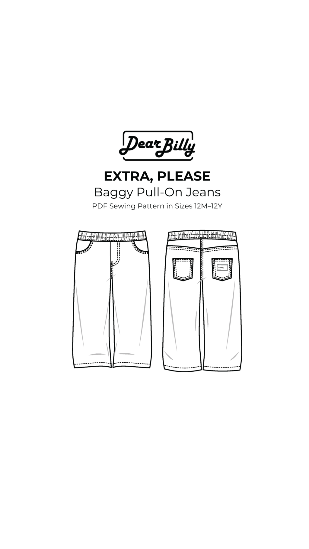 ‘Extra, Please’ Baggy Pull-On Jeans Pattern by DearBillyPatterns.