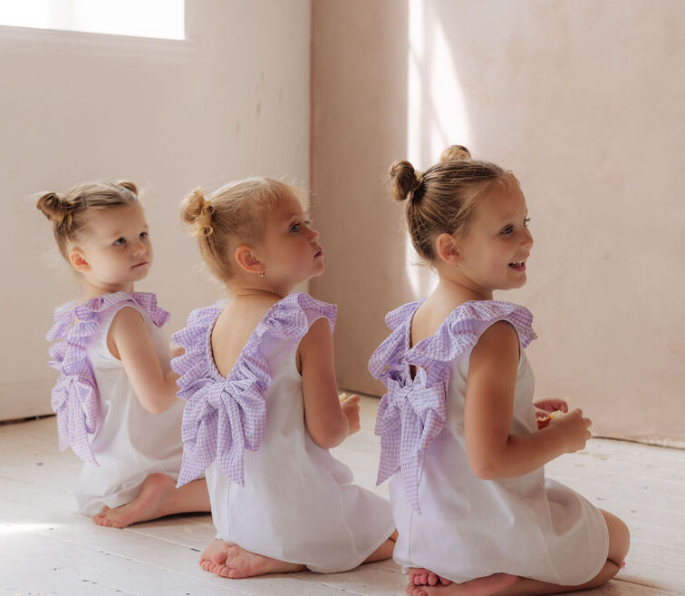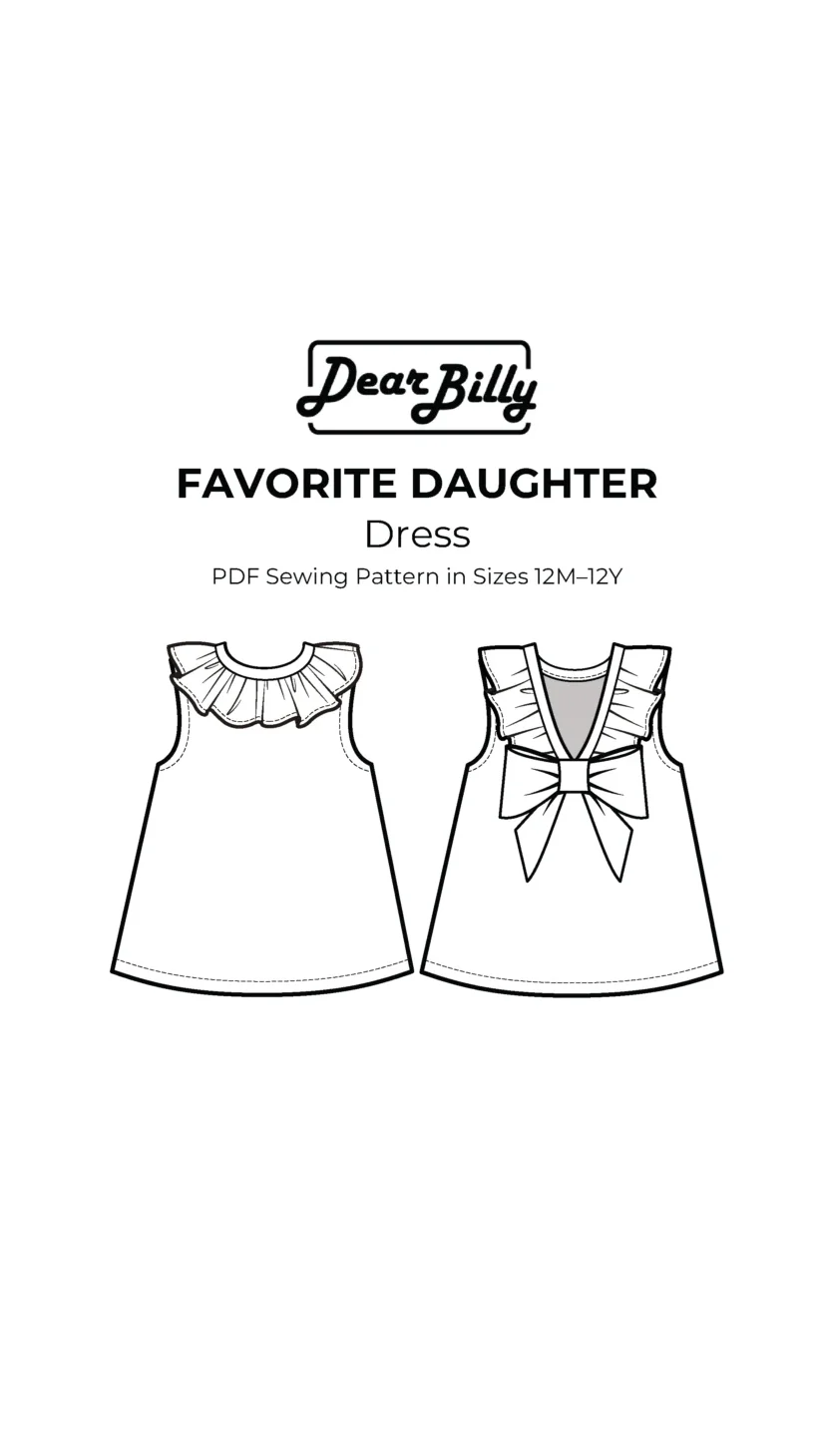 The Favorite Daughter Dress features an A-line silhouette with a ruffle along the neckline, a statement bow, and a V-shaped back neckline. Perfect for special occasions, play, or everyday wear, this dress is comfortable, versatile, and fun to sew.