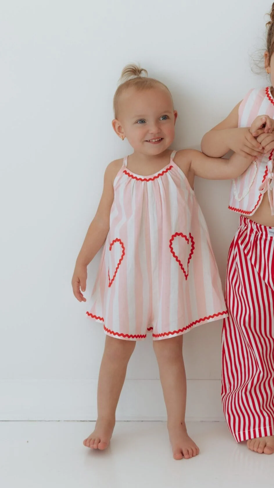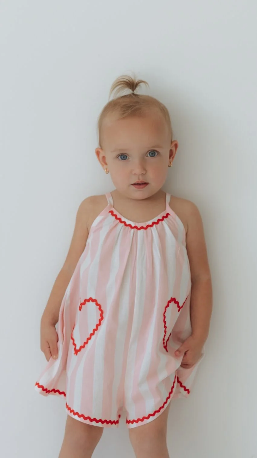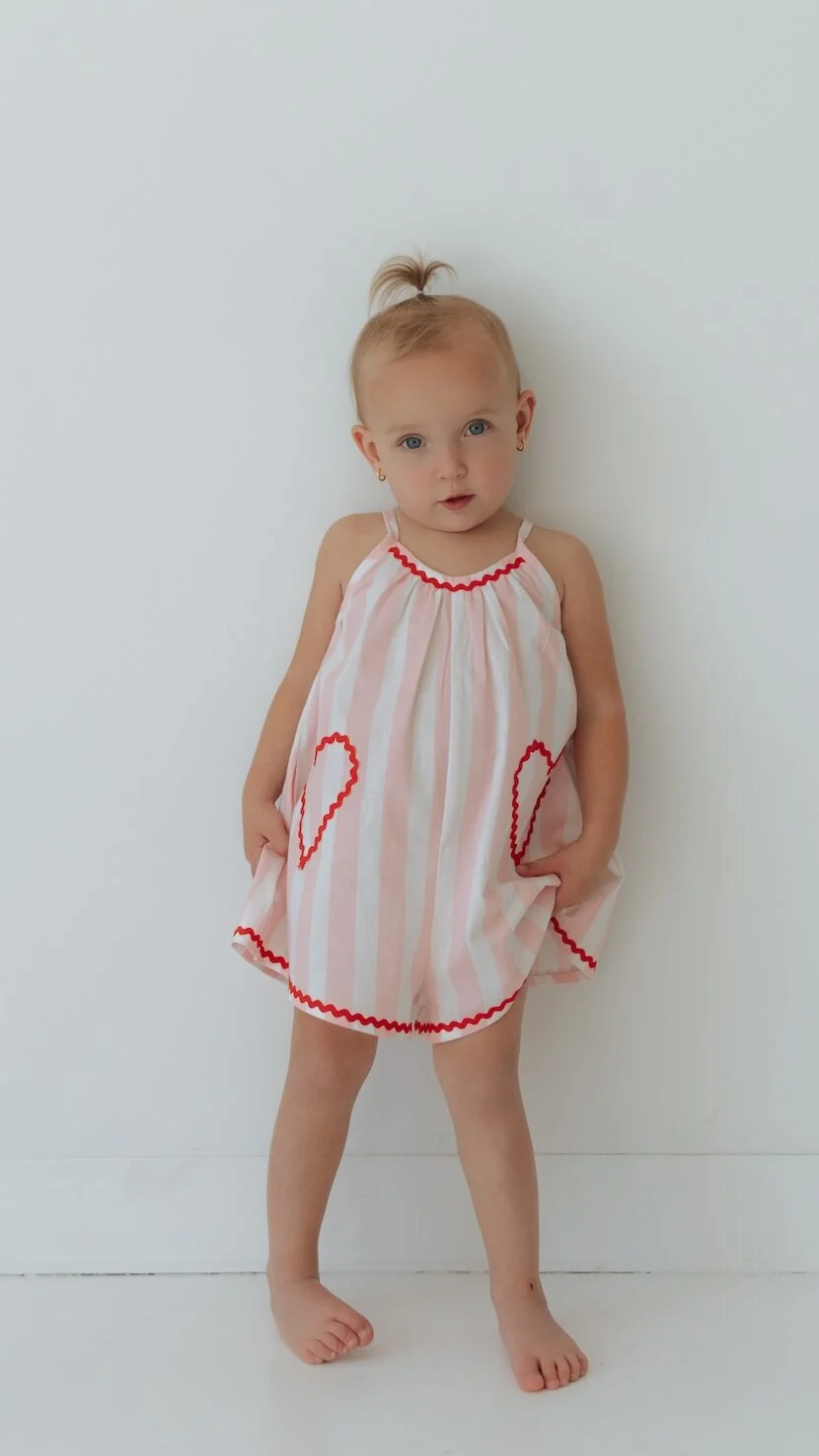 The Palm Angel Playsuit features a flowy, dress-inspired silhouette with integrated shorts for comfort and coverage. Designed with gathered details, a soft neckline, and delicate strap construction, it offers volume through the body while maintaining a clean, structured finish. It also includes side pockets for practicality and clean-finished inner seams for a polished interior. The back neckline includes elastic for ease of wear and a flexible fit.