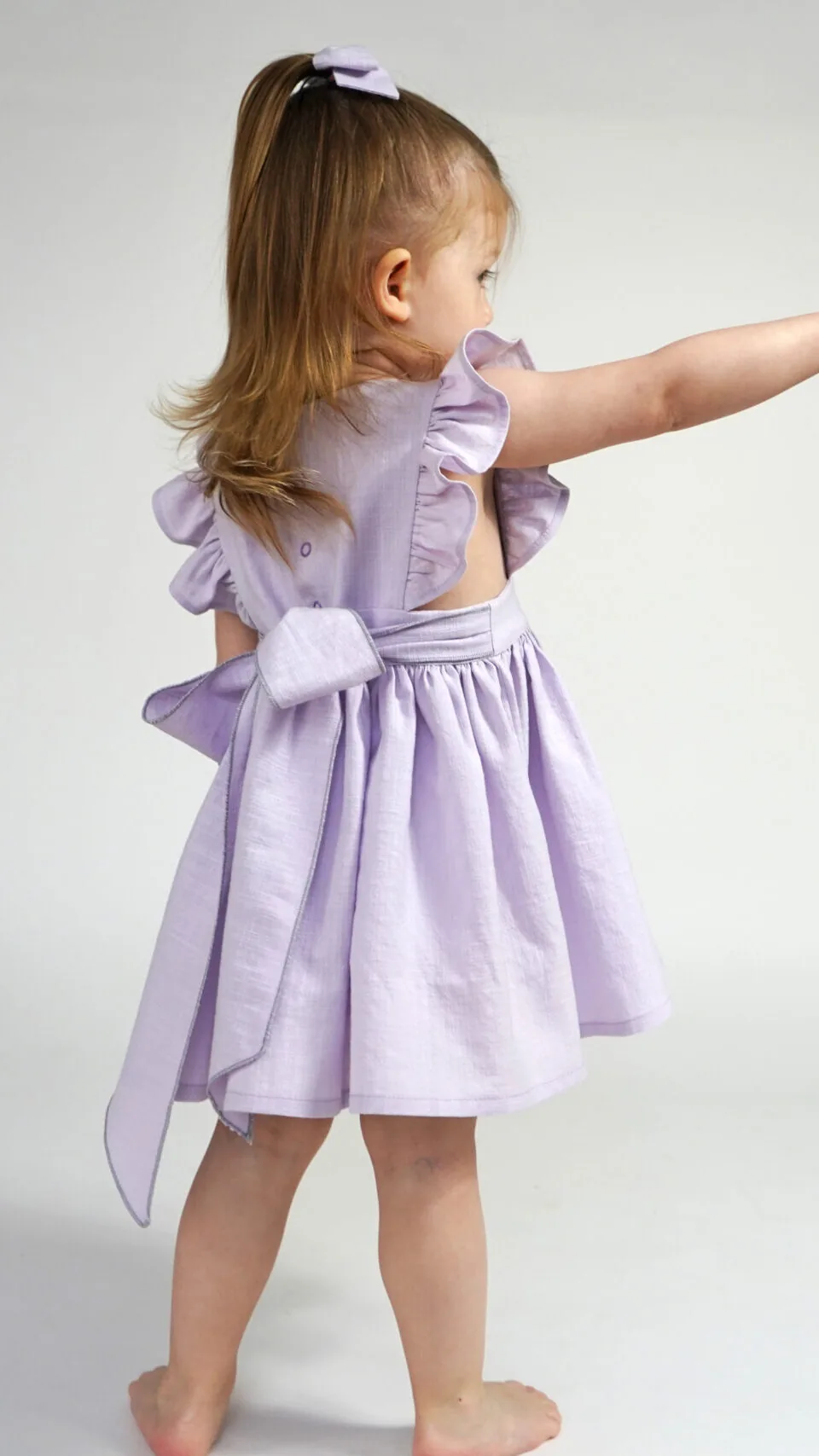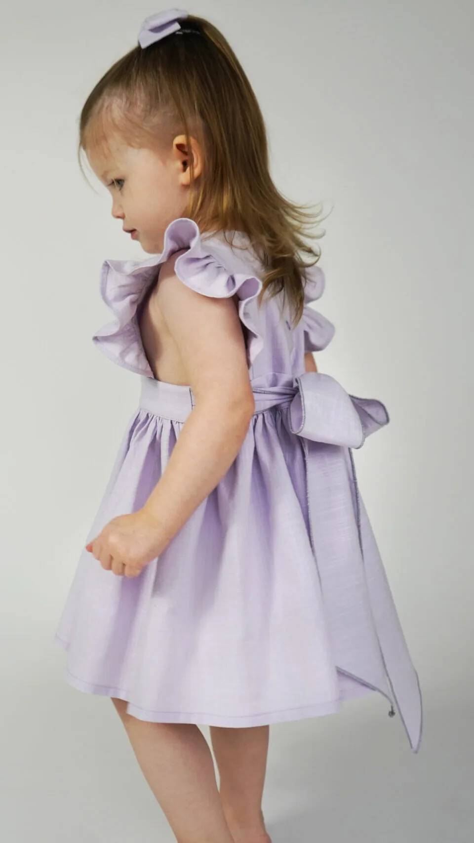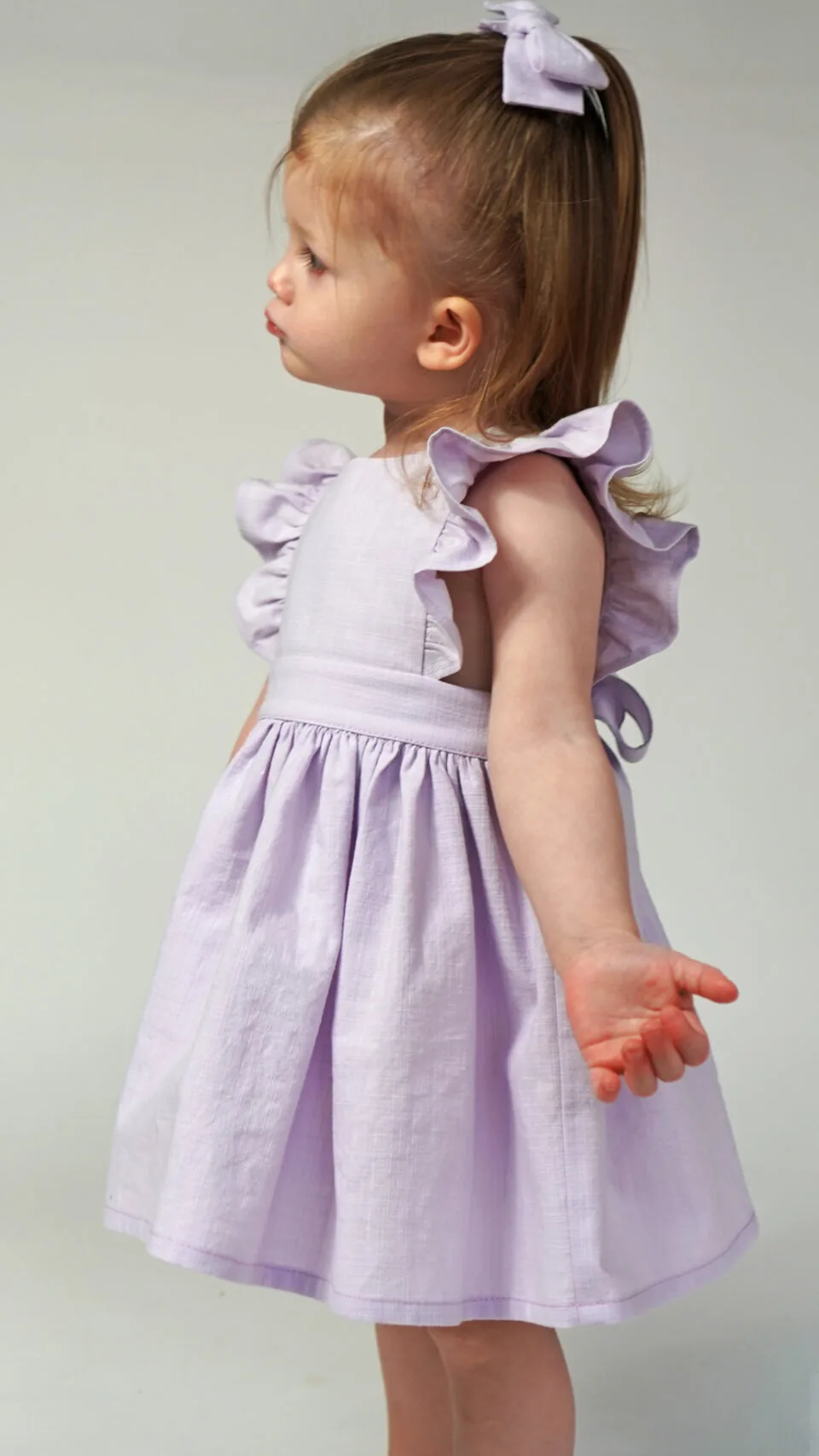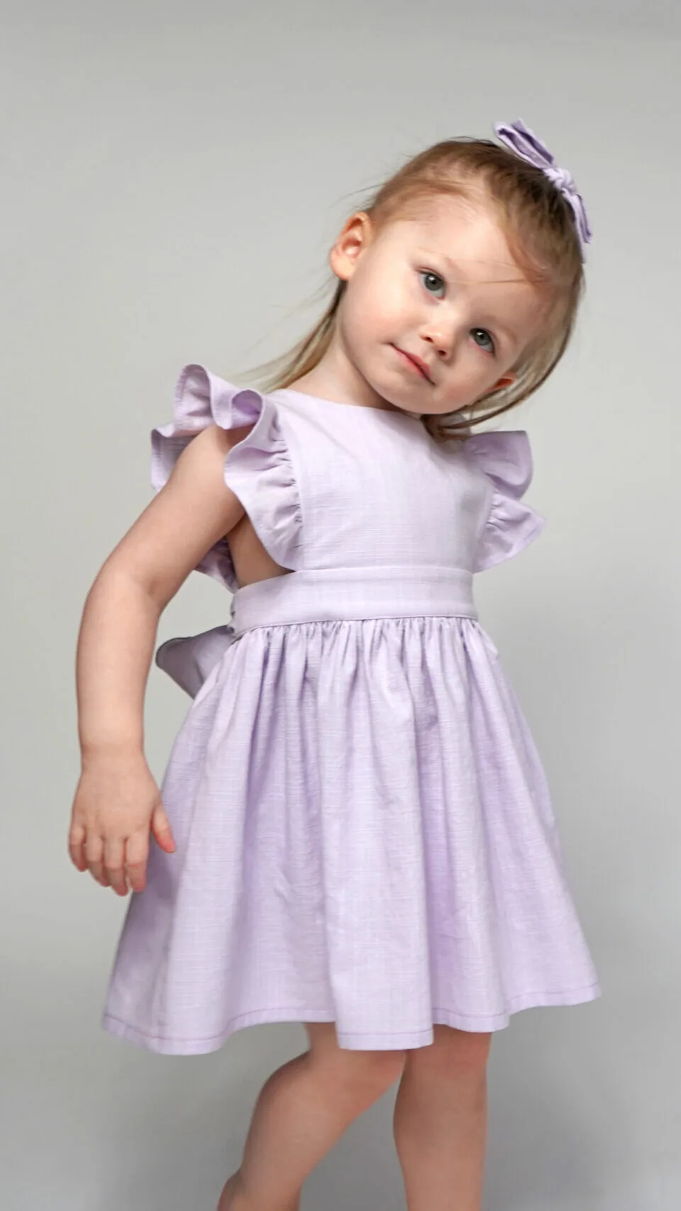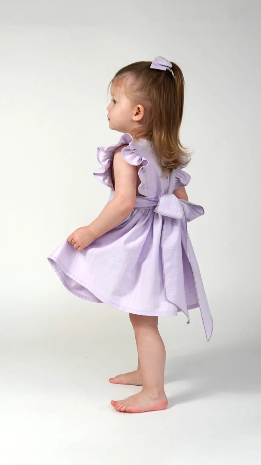 This is a girls ruffle pinafore dress with a back bow PDF sewing pattern (instant download) with instructions.