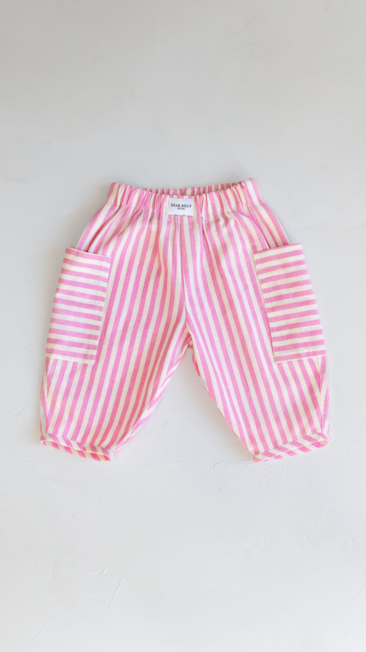 The Cali Trousers feature an oversized, rounded balloon silhouette with a gently tapered hem and a cropped, slightly-above-ankle length for a clean, modern look. Designed with large side patch pockets and a comfortable elasticated waistband, they offer plenty of ease through the leg while maintaining a stylish barrel shape. Suitable for woven fabrics such as cotton twill, linen blends, denim, chambray, or lightweight canvas.