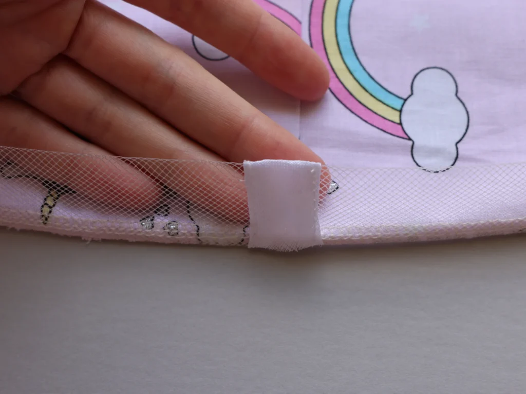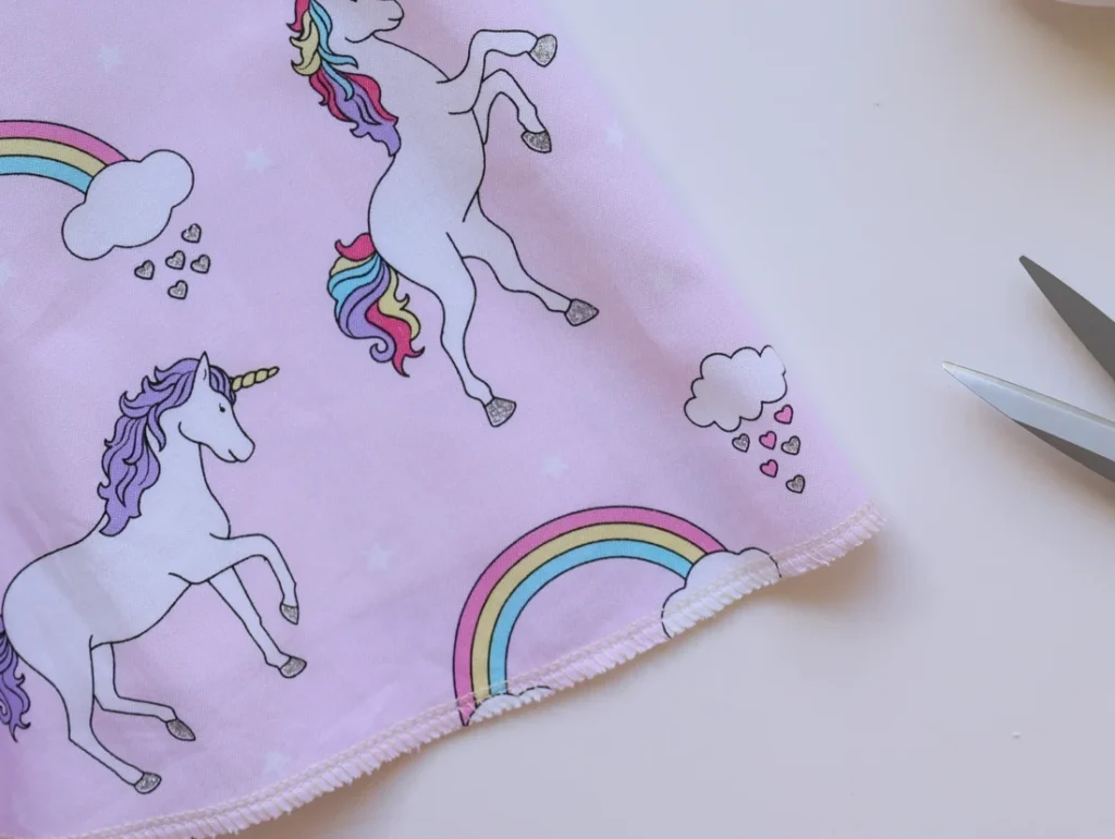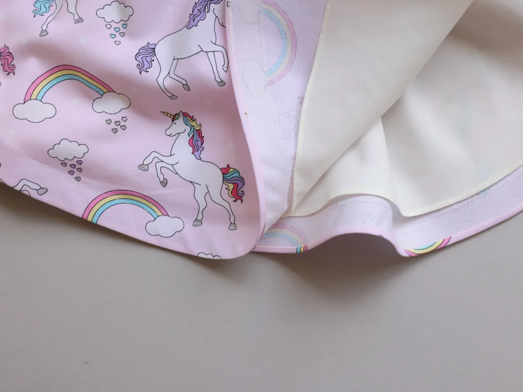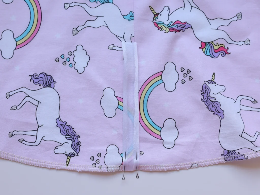 For smaller sizes like children’s or toddlers’ dresses, we recommend using 2.5 cm / 1 inch wide horsehair braid. It’s sturdy enough to give structure but still soft and flexible for little hems. When shopping, look specifically for the soft type of horsehair braid — it curves more easily and gives a smoother finish.