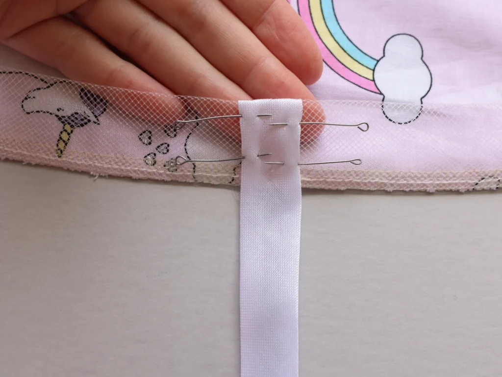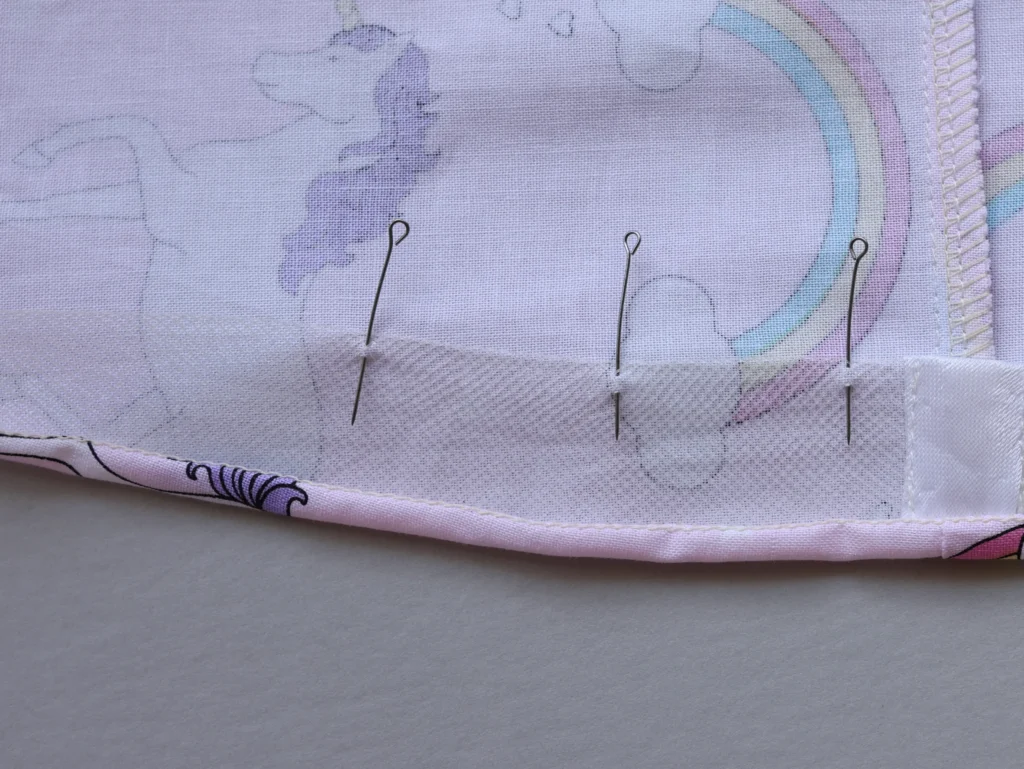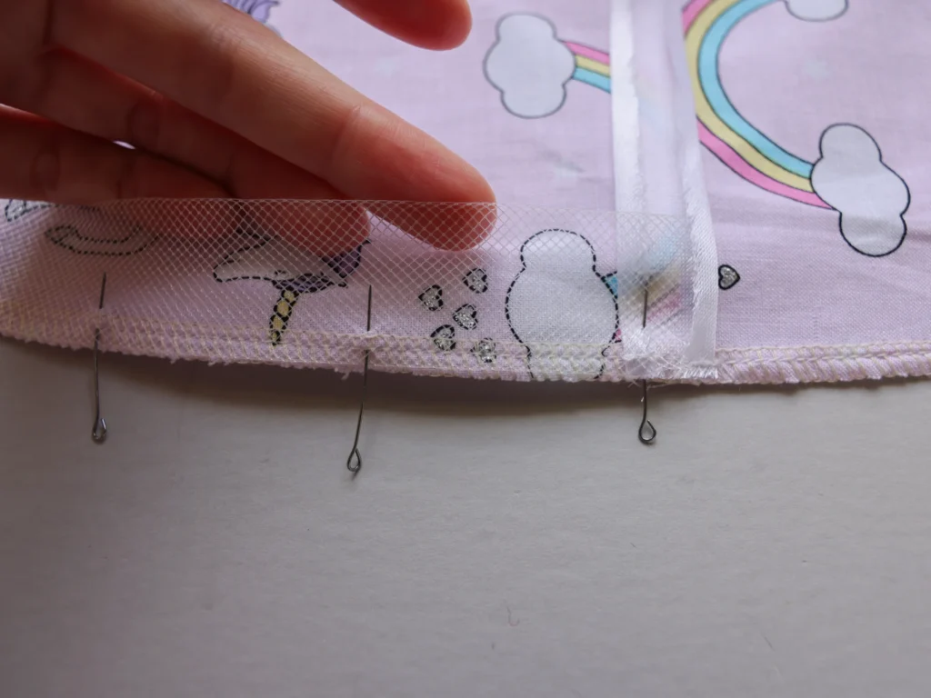 Pin the top edge of the horsehair braid to the fabric on the wrong side.