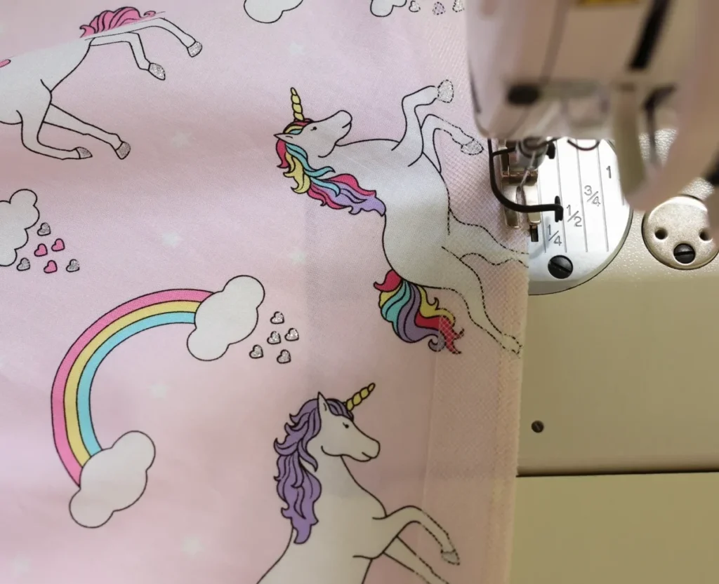 Once stitched, the horsehair is fully secured, and the hem has a smooth, structured finish.