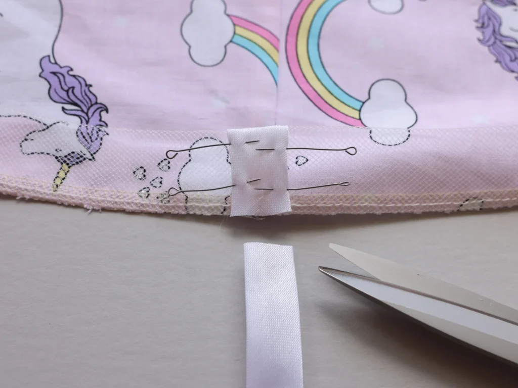 Once the horsehair braid is fully enclosed, trim any extra bias tape at the end.